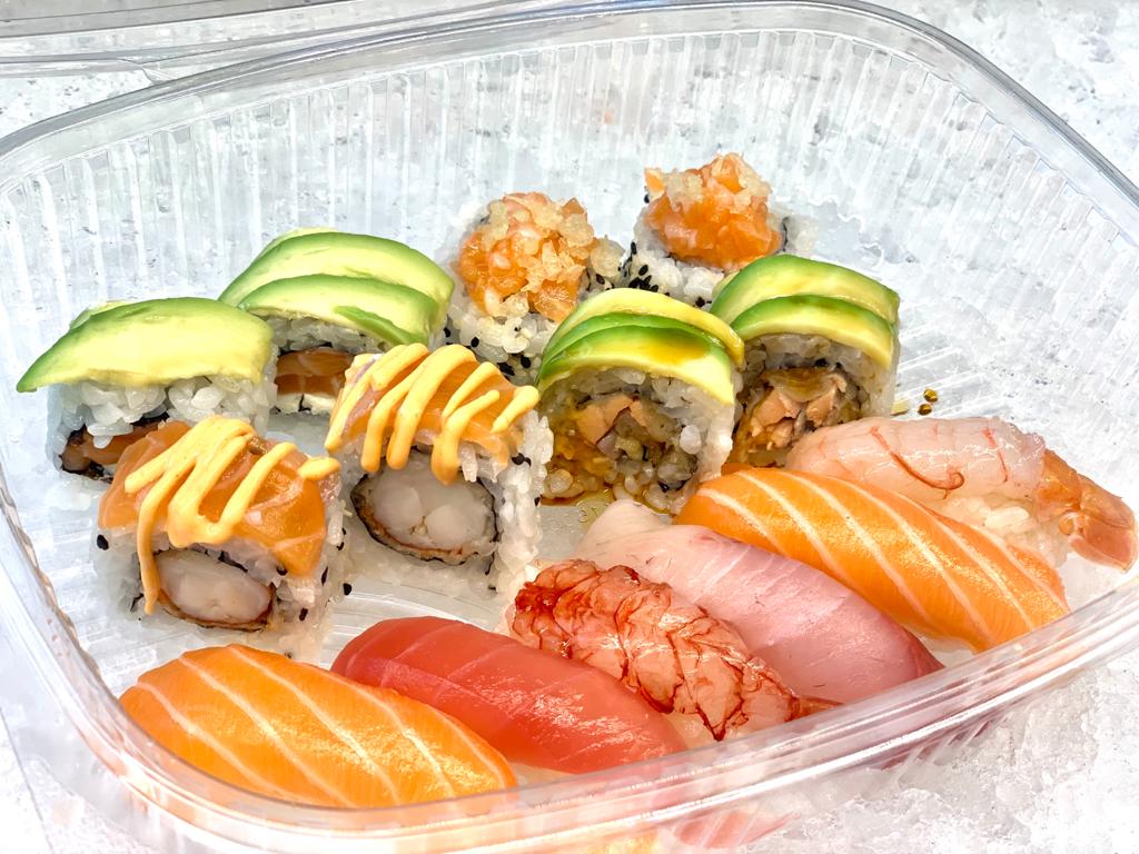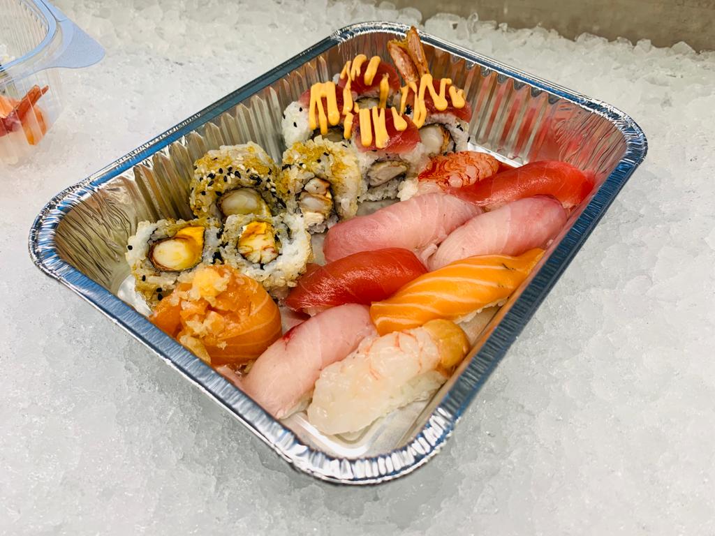 6 sashimi, 4 nigiri misti, 4 hosomaki, 8 uramaki