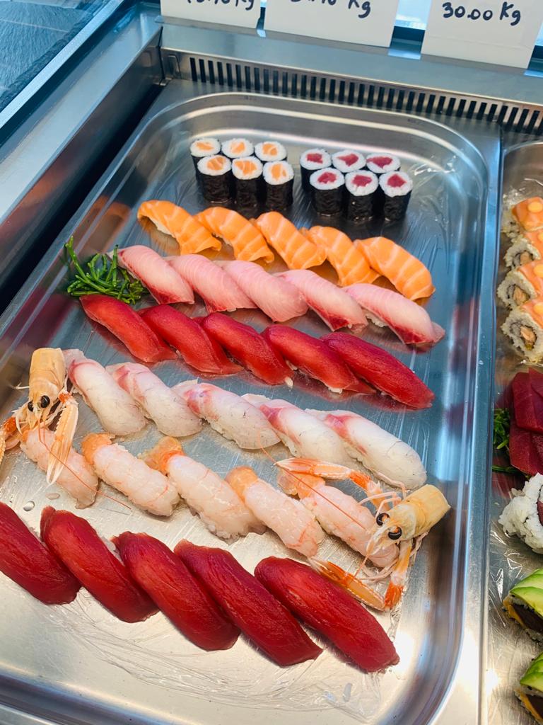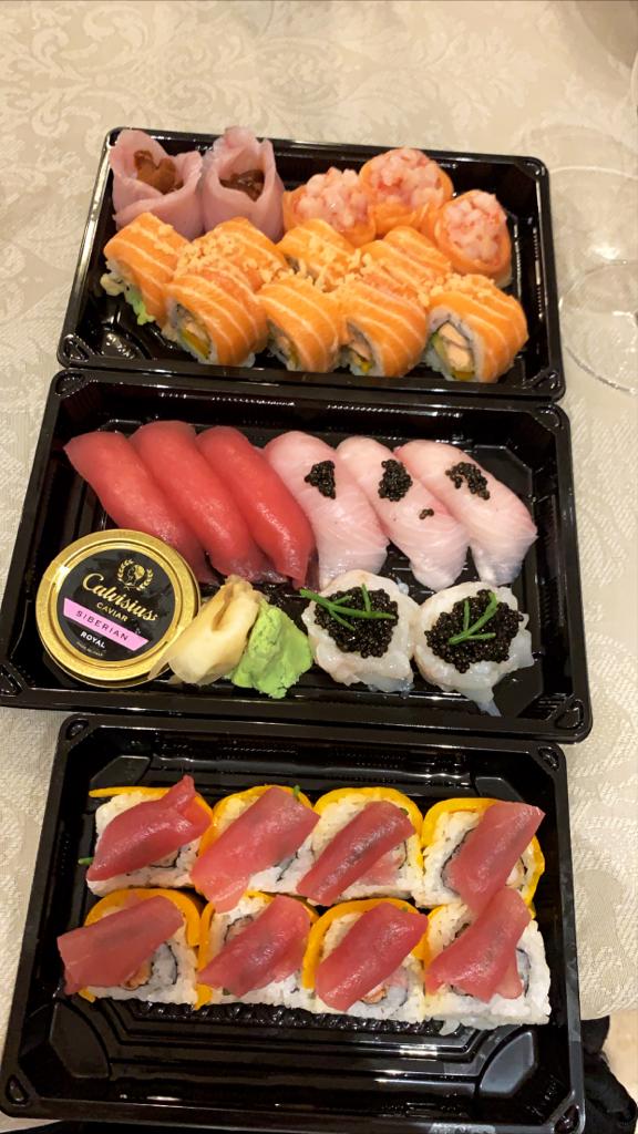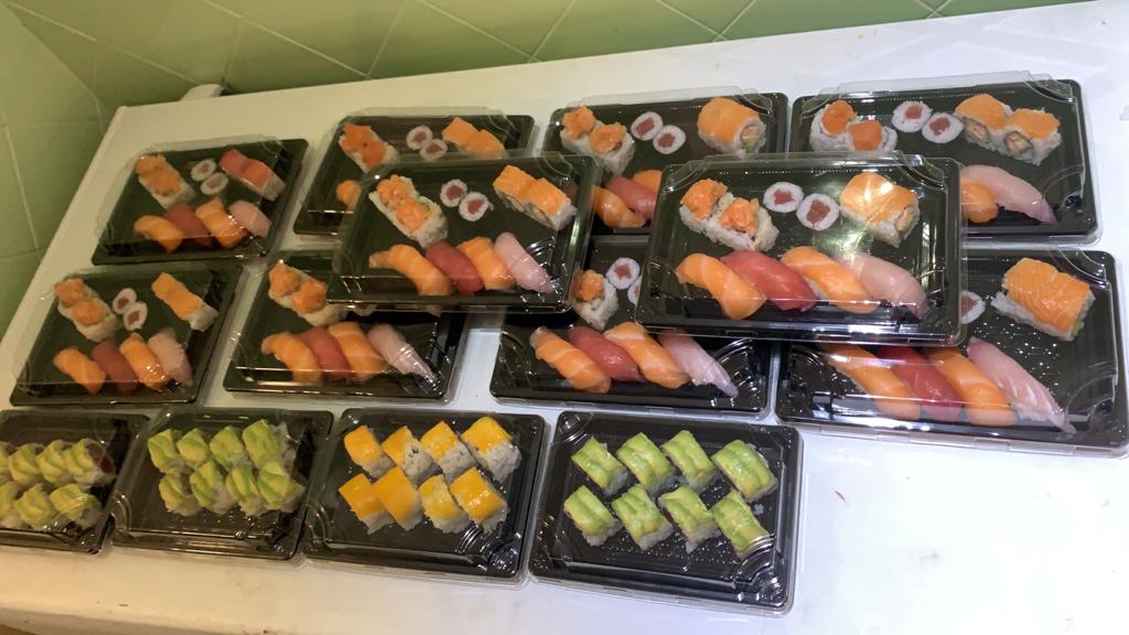 40 nigiri, 32 uramaki, 32 hosomaki, 20 sashimi